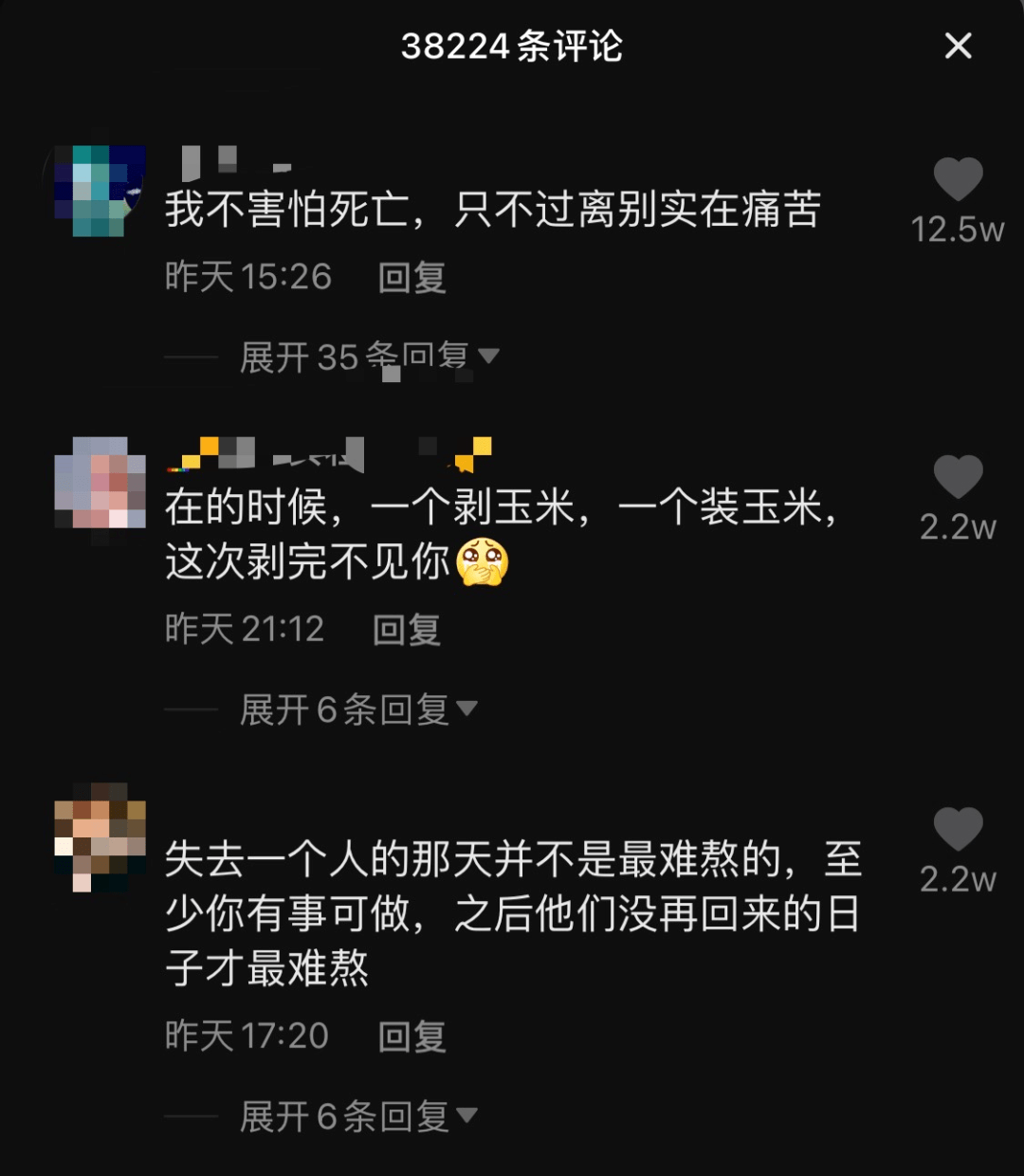 晚上10点18分 , 监控显示 , 家中65岁的父亲坐在黑漆漆的院子里 , 独自一人剥玉米 , 一个人的身影在玉米堆的映衬下 , 看起来十分孤寂 。
